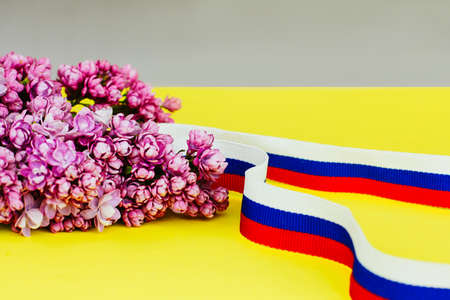 Russian flag tricolour, symbol of Russia. The ribbon is painted in the colors of the Russian flag. rapeseed