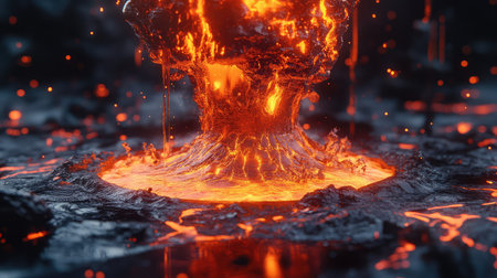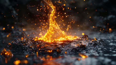 Fiery explosion of molten metal in a smoldering coals
