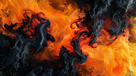 Abstract fiery swirl with vibrant orange and black colors