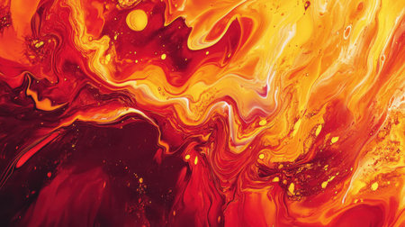 Fiery reds and yellows in a dynamic fluid art pattern, evoking the energy of molten lava.