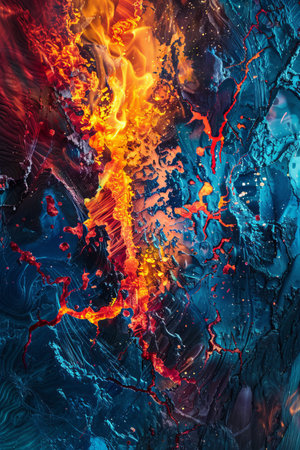 Vibrant Abstract Art with Fiery and Cool Tones