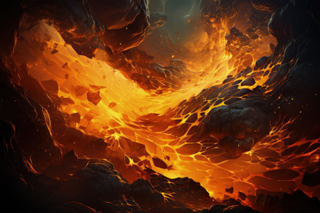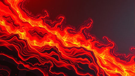 Abstract lava currents, fiery heat waves. Dynamic flow, intense energy, and volcanic passion