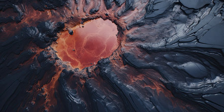 A Dramatic volcanic lava flow with glowing red and black textures creates mesmerizing and intense natural scene