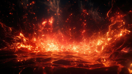 The artwork showcases a dynamic blend of abstraction and energy through the use of fiery elements and a warm color scheme. Its high-quality digital execution makes it suitable for modern design projects, digital media, and creative marketing materials. The intense and vibrant style appeals to graphic designers and digital artists looking for impactful visuals. AI-generated illustration.