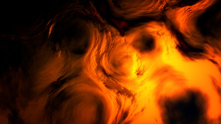 burning infernal yellow orange twinkling volumetric shapes - abstract 3D illustration