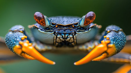 A stunning close-up of a vibrant crab with intricate textures and vivid colors, captured in sharp detail.