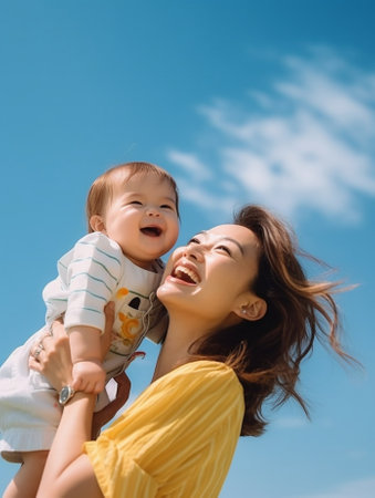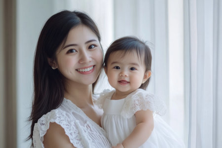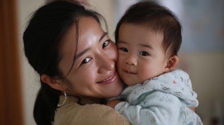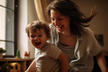 A mother with a child in a room, created with the help of generative AI technology.