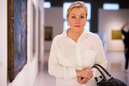 Closeup on mature female visiting museum