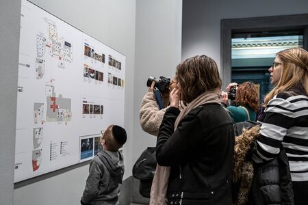 London/UK - Dec 01, 2019: visitors checking the museum map in the National Gallery in London. The National Gallery houses a collection of over 2,300 paintings dating from the mid-13th century to 1900