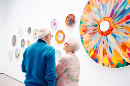 Old couple of husband and wife, enjoying retirement - they are visiting a modern art gallery Generative AI