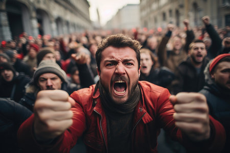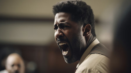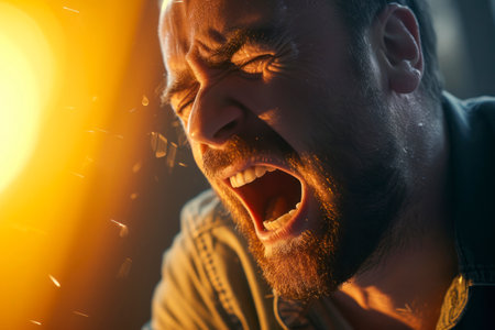 A powerful image capturing the raw anger and intense scream of a man.