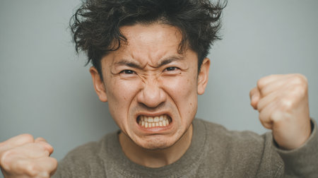 Intense expression of contained anger, fists clenched., generative AI