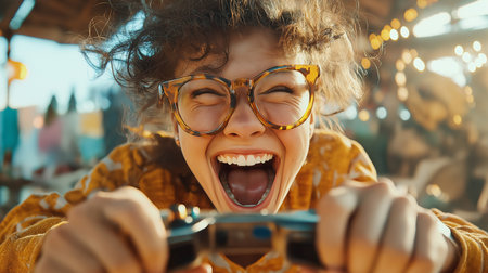 Radiant Joy as Young Woman Cheers at a Sunny Outdoor Festival Minority.