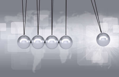 Newtons Cradle - balance business symbol. Pendulum of metal balls.