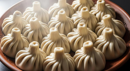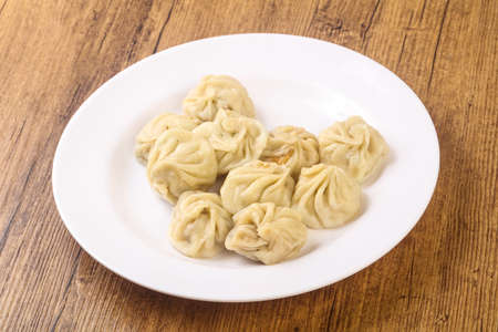 Georgian Khinkali. Traditional Dumplings on Plate