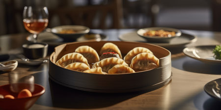 Delicious dish Chinese fried dumplings in a Chinese restaurant. Generative AI