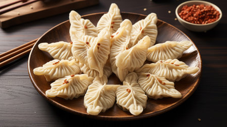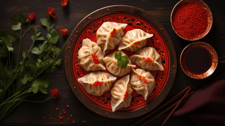 Chinese Dumpling top view. generative ai High quality
