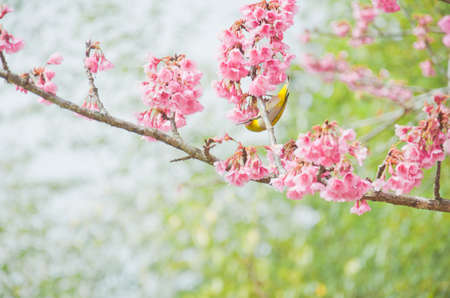white-eye Bird on Cherry Blossom and sakura