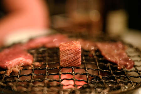 Grilling wagyu beef on charcoal grill ,Japanese barbecue roaster
