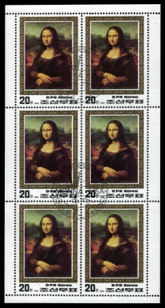 DPR KOREA - CIRCA 1986 A stamp printed in DPR Korea North Korea shows painting Monna Lisa by Leonardo da Vinci, from series Paintings by Leonardo da Vinci , circa 1986