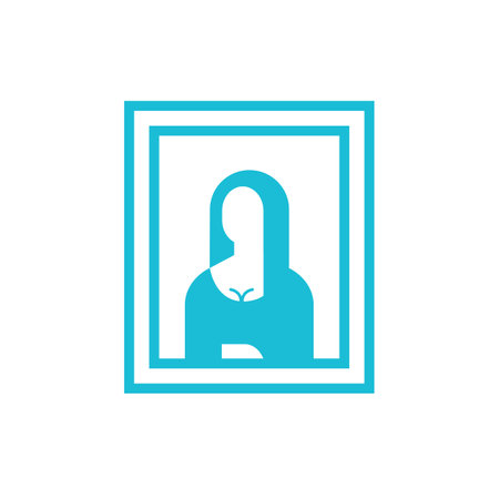 Beautiful blue colored woman portrait with long hair. Vintage pop art style, minimal design background, vector illustration.
