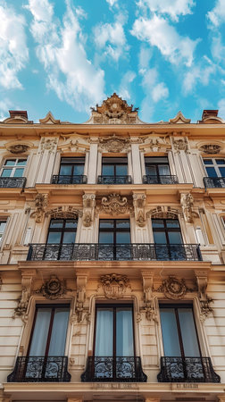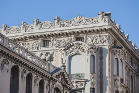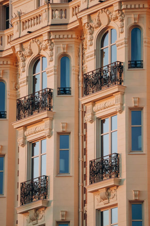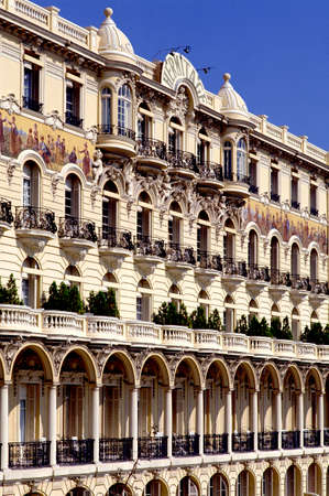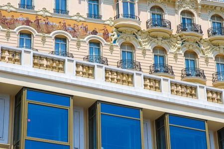 Close-up of the facade of the building in the center of Nice on Meyerbeer street