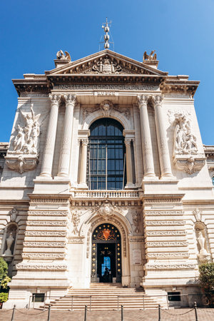 Monaco, Monaco - June 28, 2025: Facade of the Oceanographic Museum with ornate architecture and sculptures