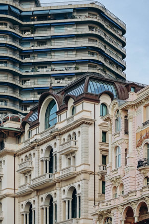 Monaco, Monaco - 25 June 2023: Beautiful facades of the Principality of Monaco
