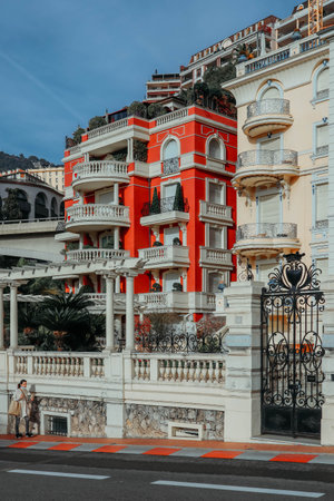 Monaco, Monaco - 28.12.2021 : Beautiful facades of the Principality of Monaco