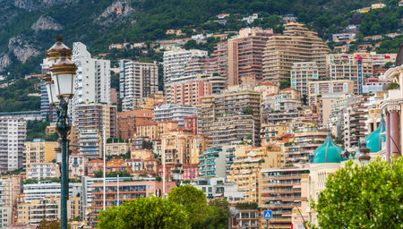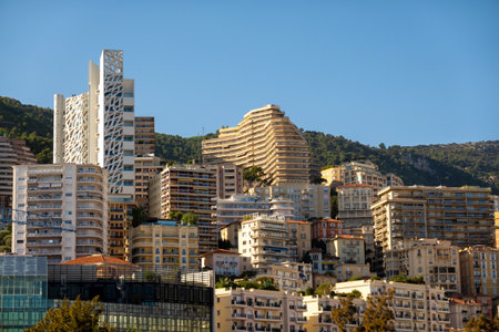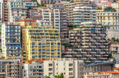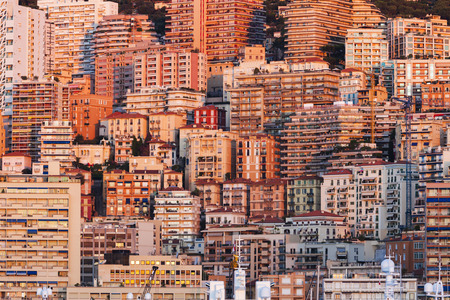 Monaco principality, densely populated urban background with apartment buildings, towers, block of flats