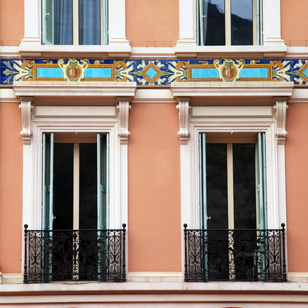 old french shutter windows and balcony, Monaco, Monte Carlo. Square image