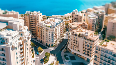 A wide angle shot of the buildings of the city of Monte-Carlo in Monaco