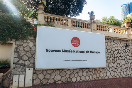 Monaco, Monaco - June 28, 2025: Entrance sign of the Nouveau Musee National de Monaco at Villa Sauber