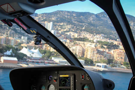 Panoramic view of Monaco and sea coast from mountain top. Cityscape from above