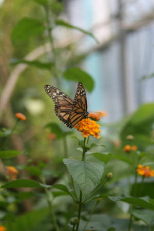 Photographed in july 2022 in Canada a monarch butterfly feeds on Agastache foeniculum. Monarchs are a threatened species.