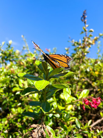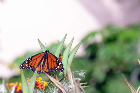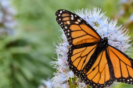 Monarch butterfly, Danaus plexippus, in a butterfly garden on a flower in spring in Southern California, USA