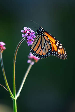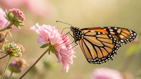 Monarch butterfly (Danaus plexippus) on a pink flower