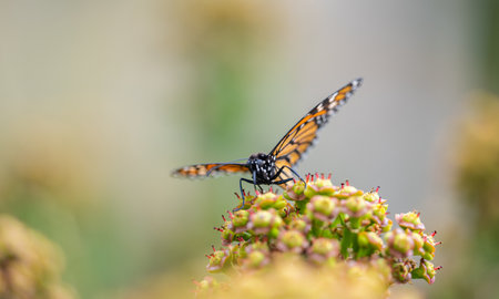 Close up on a monarch butterfly or a Danaus plexippusa from the family Nymphalidar. A beautiful orange butterfly popular for its annual southward late-summer/autumn instinctive migration.