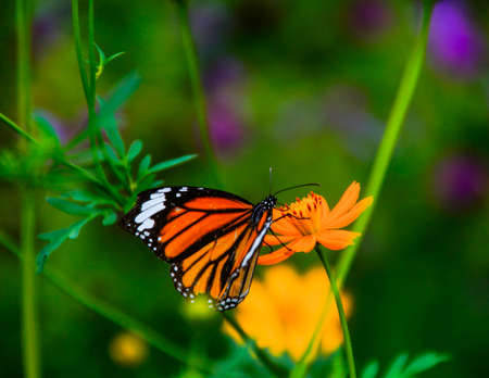 Butterflies seek nectar from flowers in the natural field. Butterfly. Striped tiger, Common Tiger