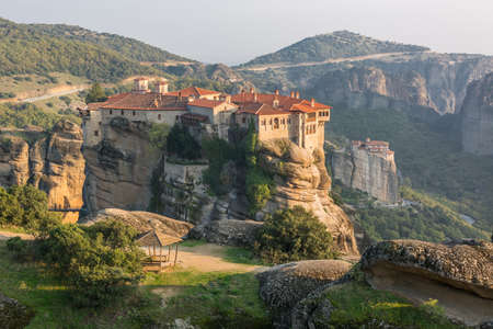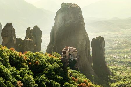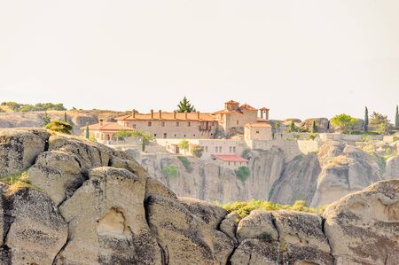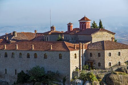 The Holly Monastery of Meteora Greece. sandstone rock formations.