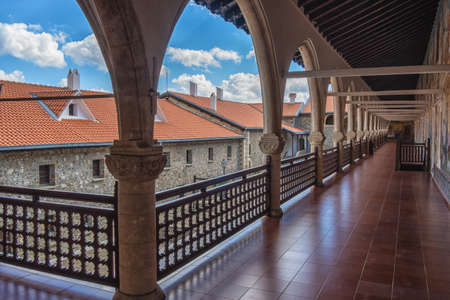 CYPRUS, PAPHOS- OCTOBER 2018: Kykkos abbey with famous mosaics inlaid with gold