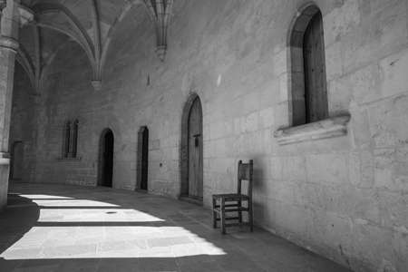 Ancient Monastery scene high above Palma in Majorca Spain in black and white