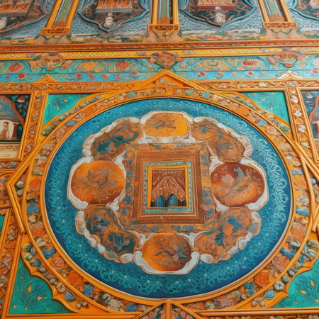 An AI generated illustration of an ornate wall in an Oriental style, with golden detailing