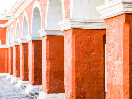 Red facade streets of Santa Catalina Monastery in Arequipa, Peru, South America