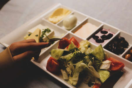 cheese platter appetizer. different festive dishes on the table in the restaurant
