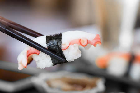 sushi squid with chopsticks, Japanese food