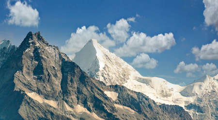 Gestola is one of the peaks of the Bezengi wall of the main Caucasian ridge, the Bezengi region. Mountain peak covered with snow.