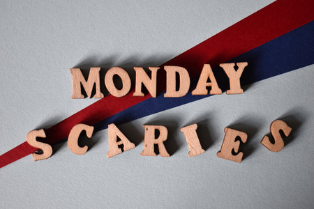 Monday Scaries, words in wooden alphabet letters isolated on background as banner headline