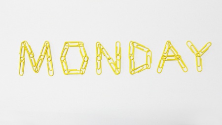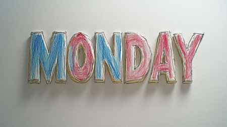 Brightly colored letters artfully depict the word Monday on a clean surface.