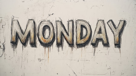 The word Monday stands boldly, showcasing creativity against a textured backdrop.